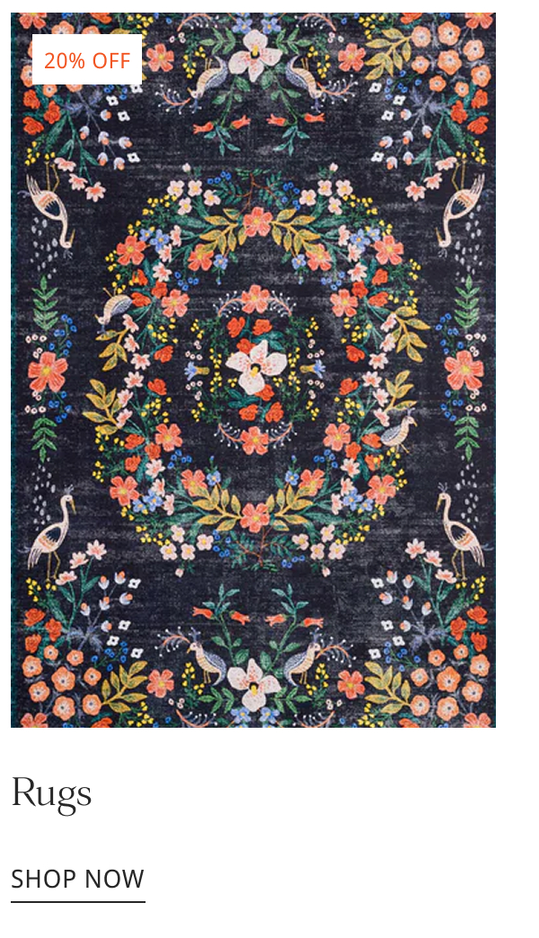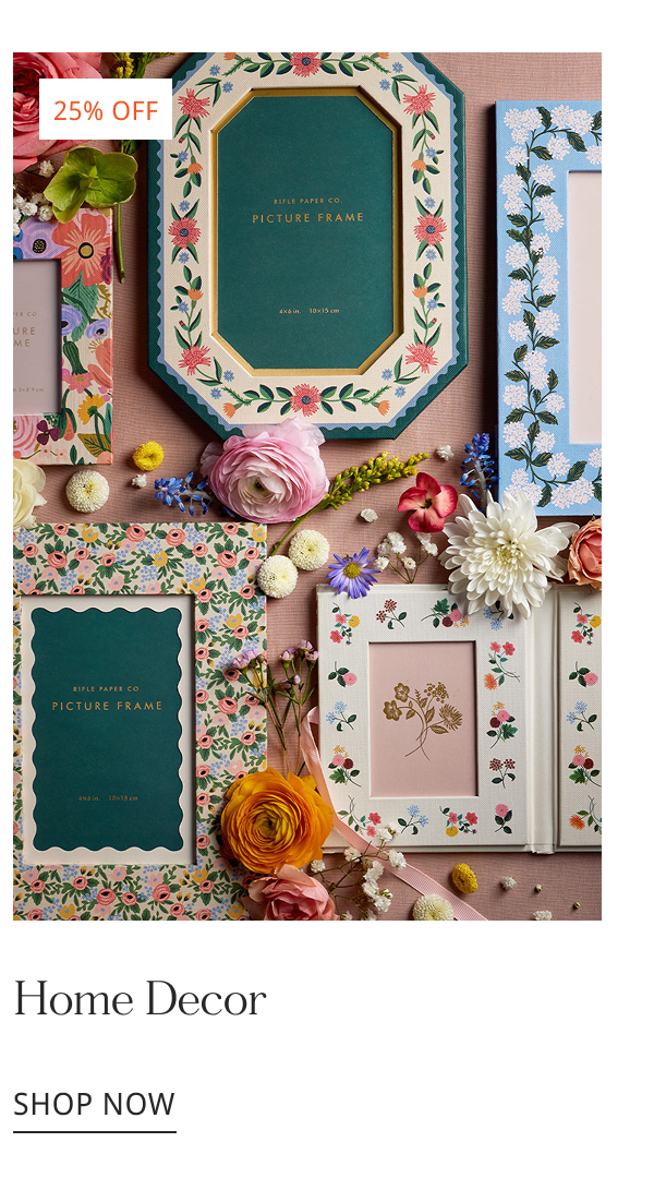 | | | | | | | *Up 25% Off: Up to 25% off sitewide at riflepaperco.com through 5/30/2024 at 11:59PM PT or while supplies last. Prices as marked. No code necessary. Promotion cannot be combined with other offers and is not valid on purchases of gift cards or e-cards, prior purchases, purchases at retail stores, or purchases on other websites. Items are not eligible for price adjustments regardless of time of purchase. Promotion excludes select New Arrivals, The Company Store bedding, bath, and loungewear, wallpaper samples, furniture fabric samples, and woven blankets. Valid online and in our Winter Park Storefront. *Get Free Shipping on all orders on riflepaperco.com through 5/30/2025 at 11:59PM PT. Use code FREESHIP at checkout. Free shipping offer valid only on orders within the contiguous U.S. Shipping promotion excludes bedding, loungewear, rugs, pillows, framed wall art, and furniture. Promotion not valid on previous purchases. Rifle Paper Co. 558 W New England Ave. No. 150, Winter Park, FL 32789 © 2008—2023 RIFLE, INC. ALL RIGHTS RESERVED. TERMS & PRIVACY Unsubscribe | Help | Contact | | | | |