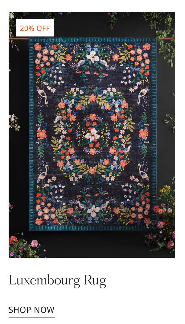 Get Free Shipping on all orders on riflepaperco.com through 5/20/2025 at 11:59PM PT. Use code FREESHIP at checkout. Free shipping offer valid only on orders within the contiguous U.S. Shipping promotion excludes bedding, loungewear, rugs, pillows, framed wall art, and furniture. Promotion not valid on previous purchases. Rifle Paper Co. 558 W New England Ave. No. 150, Winter Park, FL 32789 © 2008—2023 RIFLE, INC. ALL RIGHTS RESERVED. TERMS & PRIVACY Unsubscribe | Help | Contact | | | | |