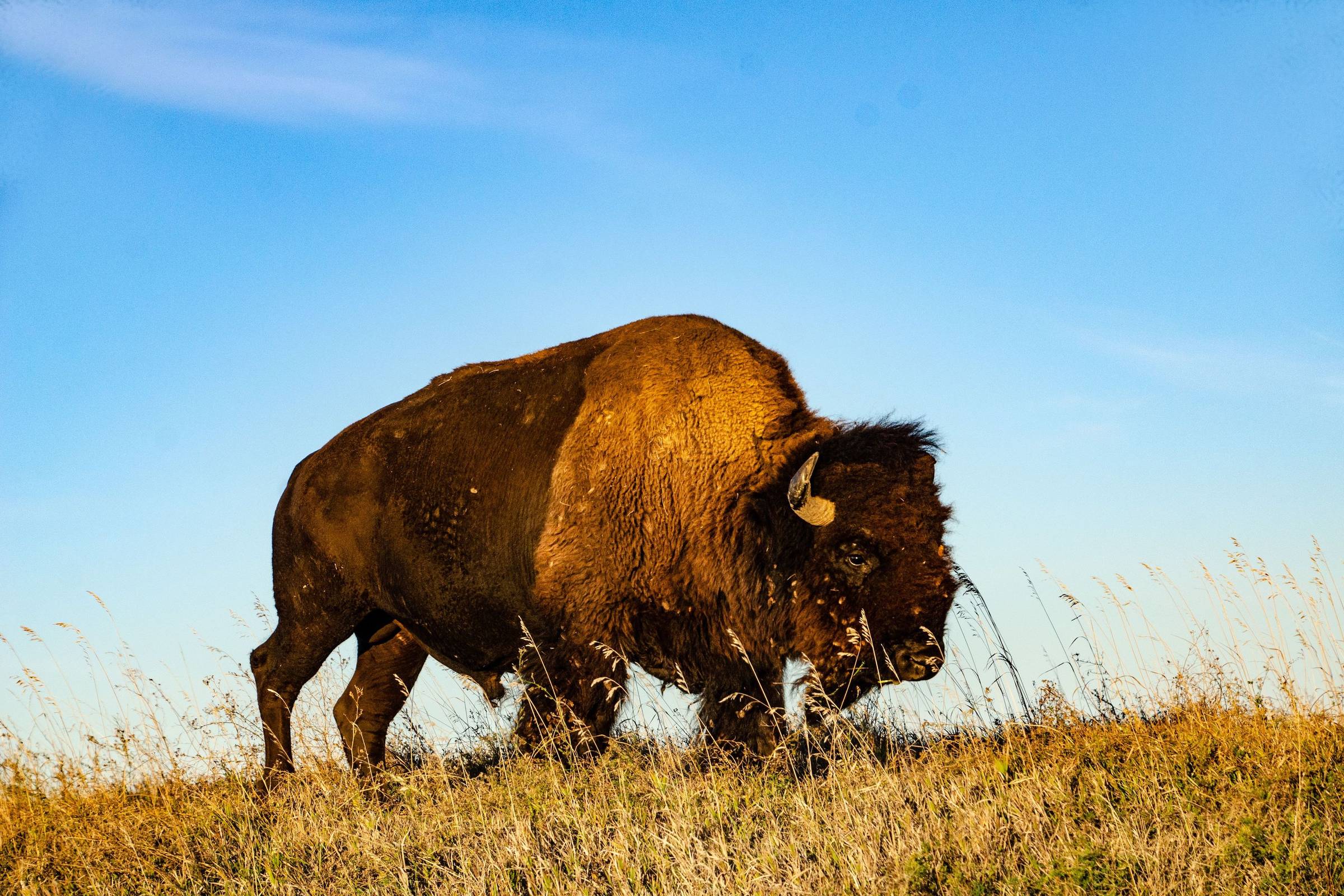 American buffalo were nearly extinct by the late 1800s. But thanks to years of steady efforts to revive the iconic species, grassland ecosystems in the U.S. are now reaping the rewards of boosted buffalo populations. "Bringing the buffalo back to the land and to our people helps restore the ecosystem and everything it supports from the animals to the plants to the people. It's come full circle," Dawn Sherman told Native Sun News. She's the executive director for Tanka Fund, a South Dakota-based nonprofit that supports Native American family- and community-owned buffalo ranches. Since 2020, the fund has facilitated the return of more than 2,300 buffalo to Indigenous communities. Buffalo are a keystone species, meaning the balance of their ecosystem is highly dependent on their presence. The animals' return to their native habitat has helped revive some American prairie lands, Sherman said. "It's exciting to see buffalo go back on that land and see the ranchers caring for the soil, the plants, and the animals and watching them restore their piece of property back to the natural state," she added.