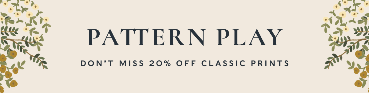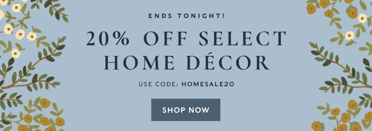 *20% Off Home Sale: Take 20% off select Home items at riflepaperco.com and in our Winter Park storefront through 03/10/2025 at 11:59PM PT or while supplies last. Use code HOMESALE20 at checkout. Code applies only to select Loloi Rugs, select Loloi Pillows, select Loloi Framed Wall Art, York Wallpaper, Cloth & Co. Furniture. Promotion excludes samples and new Loloi products. Promotion cannot be combined with other offers and is not valid on prior purchases, or purchases on other websites. Valid online and in our Winter Park storefront. Rifle Paper Co. 558 W New England Ave. No. 150, Winter Park, FL 32789 © 2008—2024 RIFLE, INC. ALL RIGHTS RESERVED. TERMS & PRIVACY | | | | |