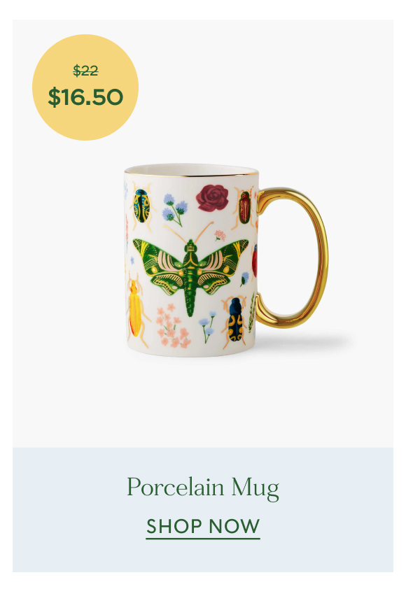 *Up 25% Off: Up to 25% off sitewide at riflepaperco.com through 5/30/2024 at 11:59PM PT or while supplies last. Prices as marked. No code necessary. Promotion cannot be combined with other offers and is not valid on purchases of gift cards or e-cards, prior purchases, purchases at retail stores, or purchases on other websites. Items are not eligible for price adjustments regardless of time of purchase. Promotion excludes select New Arrivals, The Company Store bedding, bath, and loungewear, wallpaper samples, furniture fabric samples, and woven blankets. Valid online and in our Winter Park Storefront. Rifle Paper Co. 558 W New England Ave. No. 150, Winter Park, FL 32789 © 2008—2023 RIFLE, INC. ALL RIGHTS RESERVED. TERMS & PRIVACY Unsubscribe | Help | Contact | | | | |