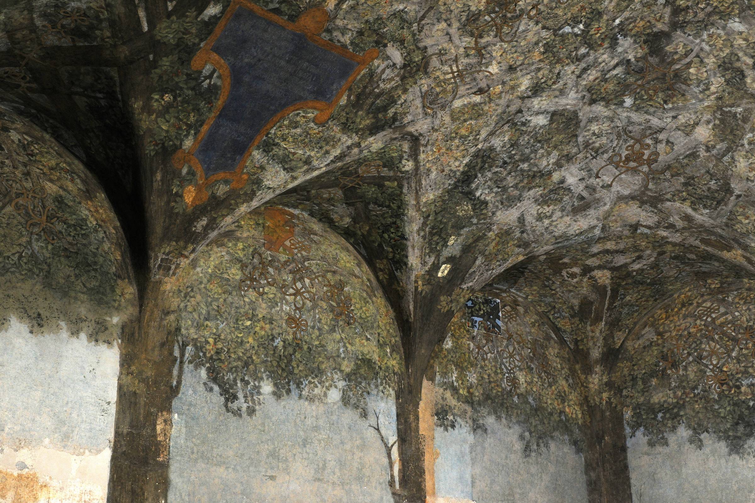 If you'll be in Milan between Feb. 7 and March 14 (perhaps for the Winter Olympics), you're in luck — during this time, those visiting the city's Sforza Castle will be able to view a long-concealed, unfinished Leonardo da Vinci painting. To see the wall and ceiling mural, visitors will climb up a nearly 20-foot scaffolding to watch restorers work on it in the Sala delle Asse, a large room in the medieval castle. The painting, which da Vinci started around 1498, depicts an array of leafy tree branches intertwining to form a pergola. After the artist was forced to flee the city when the French arrived in 1499, the unfinished work was covered with plaster while the castle was used as military barracks under French occupation. Then in the early 20th century, the plaster was removed and intermittent restoration efforts began, some of which "must be done centimeter by centimeter" due to the piece's fragile nature, Luca Tosi, a heritage curator at the castle, told the Associated Press. Now, restorers are using Japanese rice paper with demineralized water to clear away salts in the walls, a process that is expected to take 18 months after the painting is closed to visitors again. But when it's all done, Milan culture councillor Tommaso Sacchi said in a statement that he believes it will "allow the public to rediscover the long and intense relationship between Leonardo and the city." Can't make it to Milan? This virtual tour of the Sforza Castle's Museum of Ancient Art is the next best thing.