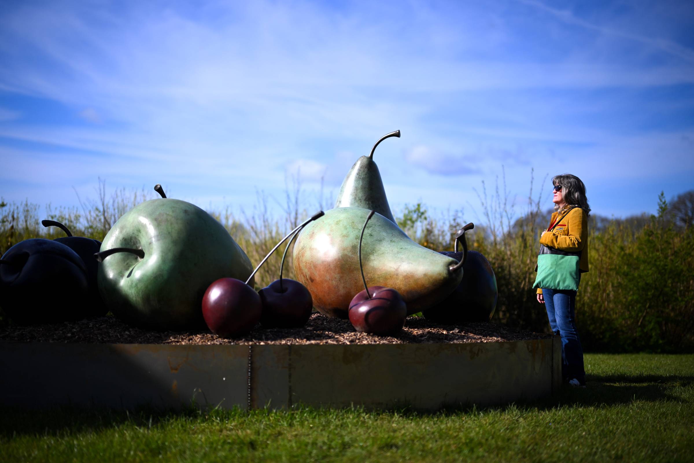 Simon Gudgeon's giant fruit sculptures are beautiful to look at, but there's a deeper meaning to them as well. The idea behind the artwork "was to make people actually look at what they're about to eat," the artist explained. "It goes a little bit back to mindful eating." Now on display through June 20, "Fruit Platter" is featured in Form, an exhibition at Pallington Lakes in Dorchester, England.