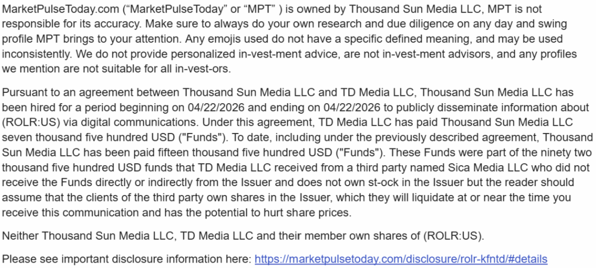 5.) 2026 Chart Moves Point To Explosive Short Term Potential For ROLR.